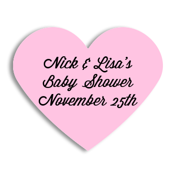 Personalized Heart Shaped Favor Labels - Wedding Favors Unlimited Perfect to place on favors boxes or bags, choose from an array of colors along with 3 lines of custom text. Line one could include a short, sweet message such as "From this Day Forward", "Forever in Love", "A Love Story" or any other declaration that captures your love for one another. Sticker size 2.75" x 2.5"