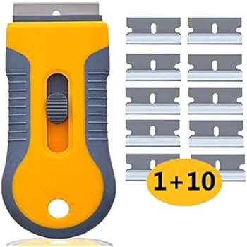 EHDIS 1.5" Plastic Razor Scraper with 10pcs Double Edged ... Ehdis Plastic Scraper Tool Set . Package includes: 1 pc plastic razor blade scraper and 10 pcs plastic blades; Wide application: widely used in removing debris, glue, stickers, labels, decals from counter tops,stoves, Adhesive ,appliances, metal, glass, plastic, granite, etc., perfect for delicate surfaces.Easy to do window cleaning, Car Windshield Cleaning,Glass Cleaning,Tile Cleaning ...