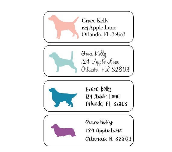 Dogs Address Labels | Colorful Images Dog Breed Deluxe Return Address Labels (15 Designs) $8.99 Yorkie Deluxe Return Address Labels $8.99 Puppies Deluxe Return Address Labels $8.99 Colorful Dogs Border Return Address Labels (3 Designs) $8.99 Paw Prints Connect Wrap Diecut Address Labels (4 Colors) $9.99 Puppy & Pal Select Return Address Labels $8.99