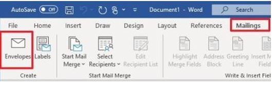 How to Print Envelopes in Word | CustomGuide Create an Envelope. Click the Mailings tab. Click the Envelopes button in the Create group. Enter a Delivery and Return Addresses . If you select a delivery address in the document before clicking the Envelopes button, it will be automatically filled in. Click the Insert Address button, select the profile you want to use, and select a contact.