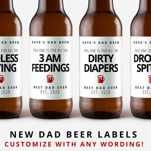 "Dad Jokes" Printable Beer Labels | My Pear Tree Home And if you aren't a fan of the corny puns and witty one-liners, maybe you can give ol' Dad a pass this one day a year (and provide him with some new joke "material" on Father's Day with these free printable beer labels). Printable Beer Labels. Each of the 6 printable beer labels has a different "dad joke" on it, giving Dad SIX new ... First Fathers Day Beer & Liquor Labels | Zazzle Dress up your beer or liquor bottle with First Fathers Day beer or liquor labels from Zazzle! Find fun designs for your tasty beverage. Shop for yours now! Fathers Day Beer Labels | Etsy Daddy's First Milestone Beer Labels - New Dad Gift - 6 Beer Bottle Labels & 1 Carrier - Funny Baby Shower or Father's Day Gift Idea BigDotOfHappiness (24,350) $11.99 Etsy's Pick Custom Daddy Firsts Beer Labels // First Time Dad Beer Bottle Labels // Diaper Party Gift // Daddy Milestone Beer ElleeDees (7,864) $17.95 First Time Dad Beer Labels — Paprika Paperie Give daddy the gift of his favorite brew personalized with these themed beer bottle labels. Great last minute gift for first time dads! AVAILABLE OPTIONS: SET OF 4 INCLUDES: 3.5" x 2.99" square labels (1) Sleepless Nights labels (1) Dirty Diapers labels (1) 3 AM Feedings label (1) Drool & Spit Up label 3.244" x 1.05" necker labels (2) I Love ...