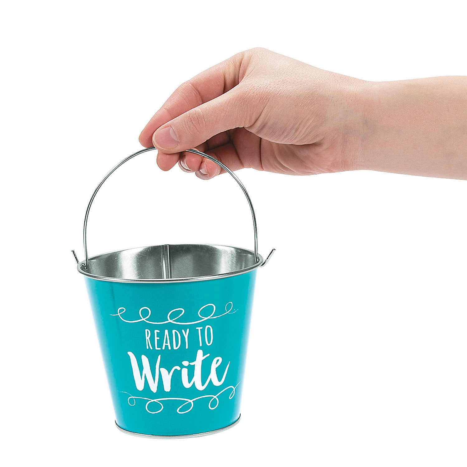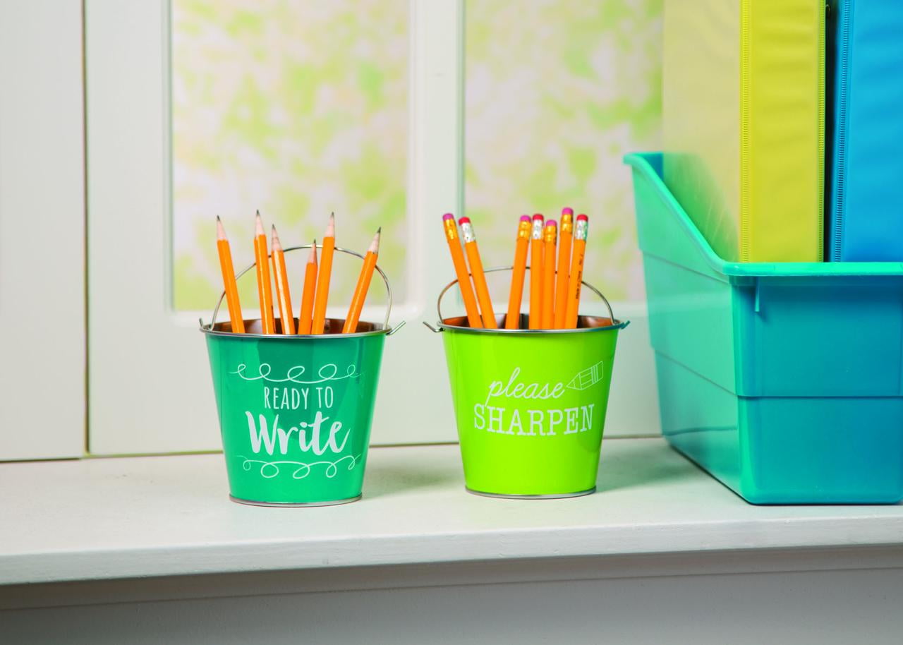 "Please Sharpen" & "Ready to Write" Pencil Buckets, Back To School, Teacher Supplies, Classroom Storage & Organization, 2 Pieces, Metal, 4" x 4.5"